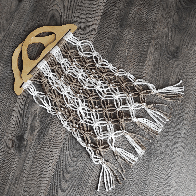 Na workshopu si udrháme tašku, kterou si můžete vzít na nákup, do práce nebo k vodě. Ucha si můžete udělat z také příze nebo použít dřevěná. Při práci opět použijeme základní plochý uzel, který se na začátku workshopu naučíme.